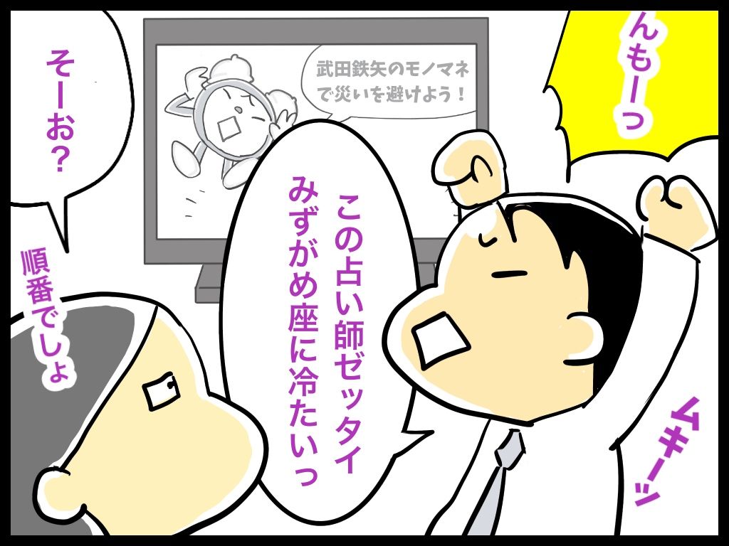 【水瓶座の男】朝の星占いをみて出勤前に荒ぶる夫 2019年05月06日 19:05 朝の情報番組をみていたら占いのコーナーが始まった。夫は水瓶座。いわく「水瓶座はいつみても運勢が悪い」らしい。 ←個人の感想ですよほど悔しかったのかよく知ってんな。 なにをゆう早見優。言いがかりも甚だし過ぎて笑った。占いは信じてないけど運勢が悪いといい気持ちはしないんだって。どうせすぐ忘れるんだから、キニスンナ!ドンマ〜イン!こんにちは、へそです。いつもご訪問ありがとうございます。占い師ネームってムーンプリンセスやらルネヴァンダールやらマドモアゼルやらとにかくパワーネームが多いわ。いざという時のためにわたしも用意しておこうかすら…!コメント評価お気軽にお寄せください。ではまた見てくださいね〜。 「夫婦の日常」カテゴリの最新記事 タグ :#おそがい#占い#星占い#占星術#運勢#今日の占い#今日の運勢#ルーティン < 前の記事次の記事 > コメント コメントフォーム 名前 コメント 記事の評価 リセット リセット 顔 星 情報を記憶 コメントを投稿する