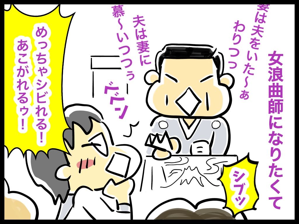 【破天荒】若かりし母の人生の選択 1 2019年07月24日 19:30 実家詣での続きです。子供の頃、やたらと古風なお稽古事をしていたへそ。実は娘にかこつけて、母J子自身が芸事大好きマンなのだ!娯楽少なすぎぃ!まさかの色よい返事!!しかも公演のただチケまで!本人やる気満々だったものの、結局「家の中がゴタゴタして」果たせなかったそうな。残念!母J子の野望は続くよどこまでも…こんにちは、へそです。いつもご訪問ありがとうございます。『進ぬ!電波少年』で坂本ちゃんの家庭教師だったケイコ先生、今や浪曲師に転身しご活躍とか。なにがあった?!コメント評価お気軽にお寄せください。ではまた見てくださいね〜!ネットもない時代によく調べたな 「実家・義実家」カテゴリの最新記事 タグ :#ライブドアブログ#おそがい#絵日記#コミックエッセイ#習い事#浪曲#女浪曲師#芸人#弟子入り#入門 < 前の記事次の記事 > コメント コメントフォーム 名前 コメント 記事の評価 リセット リセット 顔 星 情報を記憶 コメントを投稿する