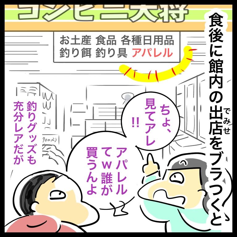 ひょっこりはんとの再会を求め、厳冬の道の駅を訪れる。 2020年02月03日 19:33 例のひょっこりコンビとの再会ならずッ…!!竜ちゃん「買うなよ?絶対に買うなよ!?」実物が はい、コチラ!おしゃれ泥棒かイタリア人しか着こなせないやつこんにちは、へそです。毎度おそがいチャンネルをご覧いただきありがとうございます。会えないと、逆に会いたくなる不思議。ーへそ心の俳句ー パワーがアップするので是非コメント記入お願いいたします。ではまた見てくださいね〜!※ 関連記事はコチラ↓【閲覧注意】美味しい食事中に噂のアイツが…ハイ、ひょっこりはん! 「夫婦の日常」カテゴリの最新記事 タグ :#ライブドアブログ#コミックエッセイ#イラスト#絵日記#ひょっこりはん#ツートップ#道の駅#旅行#お土産#グルメ < 前の記事次の記事 > コメント コメントフォーム 名前 コメント 記事の評価 リセット リセット 顔 星 情報を記憶 コメントを投稿する
