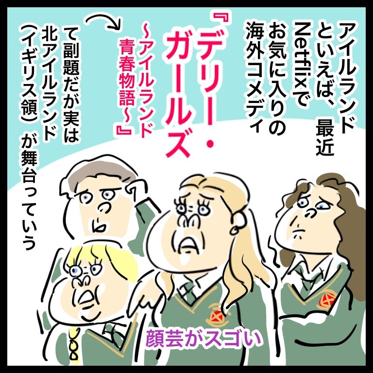 だけじゃなく、内容もメチャ面白いよ!紛争が続く90年代の北アイルランドで、カトリック系女子高生たち(+男子1)が繰り広げる、ちょいブラックな青春コメディ。当時の政治・宗教・セクシャリティ観なども程よくスパイシーでとても興味深い。「Netflixってたくさんあって結局決めらんないわ〜」て方、選択肢にカモンプリーズ!☆゚・:,。*:..。o○☆*:゚・:,。*:..。o○☆゚・:,。*:..こんにちは、へそです。毎度おそがいチャンネルをご覧いただきありがとうございます。