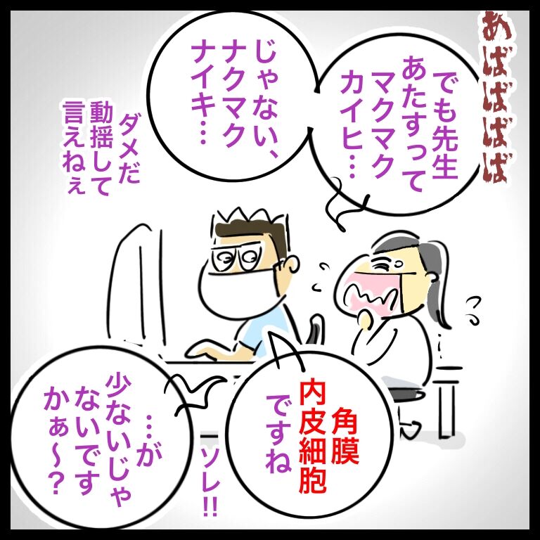 【来ちゃった…☆】アラ50女子の瞳の奥を覗いてみたら 2021年06月14日 19:33 先日の記事の続きです念のため網膜の状態を精密に診るべく、再度かかりつけ眼科に来たへそ来たかついに…先天性緑内障の主は白内障になりやすいのである健康な目の主ならば白内障などさほど痛手ではないのだろうが(手術で治るから)、白内障の手術で少なからず角膜内皮細胞が破壊されるため、あたすのような角膜内皮細胞めちゃ少ないマンは逆に失明リスクが高まってしまうのだそこんとこ実際どうなのセンセーセンセー、しゅきぃぃぃ!!あたす一生ついていきます異動多すぎぃ!生きてるといろいろあるね…でも負けない…※ 関連記事はコチラ↓ ◯☆゚・:,。*:..。o○☆*:゚・:,。*:..。o○☆゚・:,。*:..こんにちは、へそです。毎度おそがいチャンネルをご覧いただきありがとうございます。パワーがアップするので 拍手・コメント・読者登録 などリアクションいただけると嬉しいです。ではまた見てくださいね〜! 「目(緑内障ほか)」カテゴリの最新記事 タグ :#ライブドアブログ#コミックエッセイ#絵日記#イラスト#緑内障#白内障#角膜内皮細胞#神の手#ゴッドハンド#来ちゃった < 前の記事次の記事 > コメント コメントフォーム 名前 コメント 記事の評価 リセット リセット 顔 星 情報を記憶 コメントを投稿する