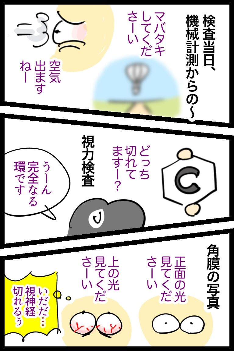 【緑内障】2022年6月の定期検査①なぜか力が有り余ってる編 2022年06月07日 19:33 先天性緑内障持ちのへそ視野検査、死力(視力)を振り絞って挑むからめっちゃめちゃ疲労困憊するのよね〜なおへそ的〝定期検査におけるHPの削られ度〟は、総力10うち視力検査3・視野検査7(余力0)ゆえにペース配分が肝要なんだが予約票ちゃんと見ない派 6月7日は「緑内障を考える日」だそう、緑内障の人もそうでない人も少し思いを馳せてみてはいかがでしょうか(めめ)◯☆゚・:,。*:..。o○☆*:゚・:,。*:..。o○☆゚・:,。*:..こんにちは、へそです。毎度おそがいチャンネルをご覧いただきありがとうございます。パワーがアップするので 拍手・コメント・読者登録 などリアクションいただけると嬉しいです。ではまた見てくださいね〜! 「目(緑内障ほか)」カテゴリの最新記事 タグ :#ライブドアブログ#コミックエッセイ#絵日記#イラスト#緑内障#定期検査#視力検査#視野検査#緑内障を考える日#今日は何の日 < 前の記事次の記事 > コメント コメントフォーム 名前 コメント 記事の評価 リセット リセット 顔 星 情報を記憶 コメントを投稿する