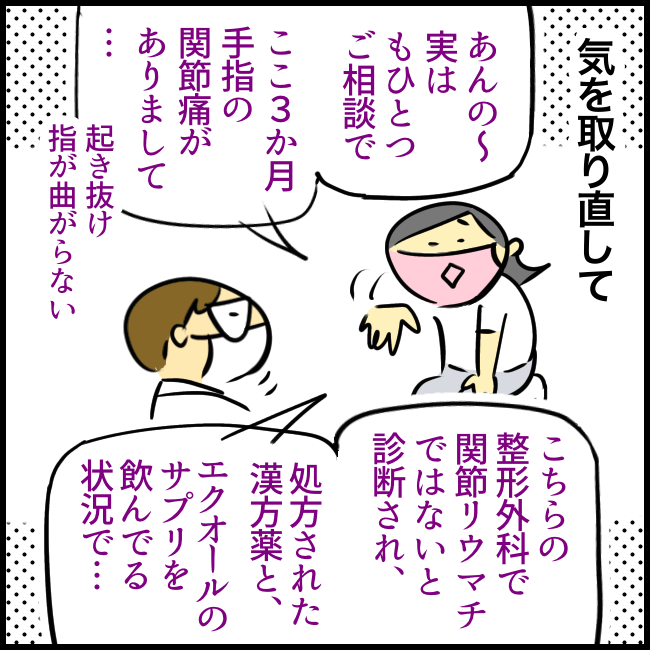 【卵巣嚢腫改め婦人科4】楽しいホルモン愉快なホルモン、ホルモ〜ン、ホルモン♪【手指のこわばり11】 2022年10月03日 19:33 卵巣嚢腫の記事 ① ② ③ の続きです理論武装してないと言葉にできないマン血ばっか抜いてるけど、あたすは元気です。てな訳で後日改めて子宮頸がん・体がん検査と血液検査の結果を聞きに行くことになりやした続く◯☆゚・:,。*:..。o○☆*:゚・:,。*:..。o○☆゚・:,。*:..こんにちは、へそです。毎度おそがいチャンネルをご覧いただきありがとうございます。パワーがアップするので 拍手・コメント・読者登録 などリアクションいただけると嬉しいです。ではまた見てくださいね〜! 「その他の病気」カテゴリの最新記事 タグ :#ライブドアブログ#コミックエッセイ#絵日記#イラスト#卵巣痛#婦人科#更年期#手指のこわばり#関節痛 < 前の記事次の記事 > コメント コメントフォーム 名前 コメント 記事の評価 リセット リセット 顔 星 情報を記憶 コメントを投稿する