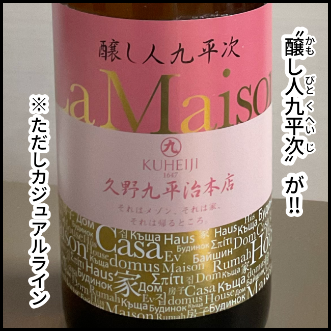 九平次の日本酒は夫氏のお気に入りのひとつで、やや上位ラインのを例年夫氏の誕プレに通販で購入してるんだが