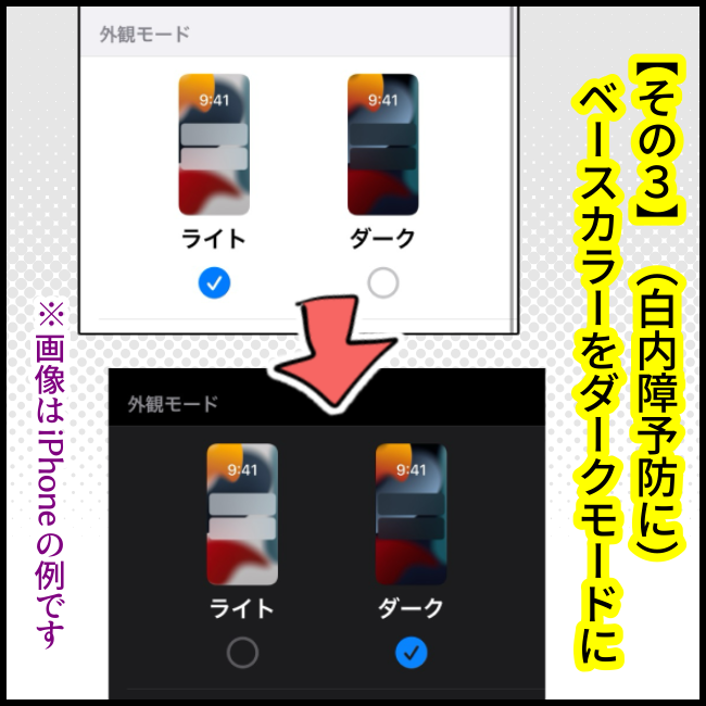 【その3・4】は暗い中でスマホを見た後、画面の残像が残りにくかった