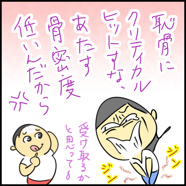 そういえば10年ほど前にも、職場で中身がミッチミチに詰まった段ボール箱を「こんなんちょろいっすよw」と勢いよく持ち上げたら、段ボール箱の角っこが恥骨にクリティカルヒットして悶絶したことがあったな…と遠い目